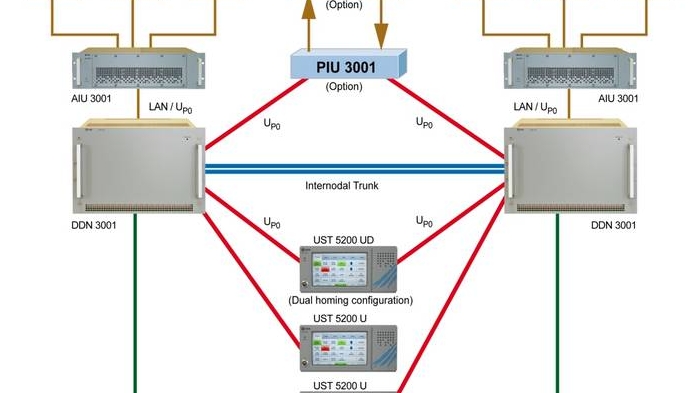 The AIU 3001 is used to network the various radios with the DDN 3001. It incorporates A/D, D/A converters and the interfaces to the DDN for radios, digital (Up0) and other external equipment.